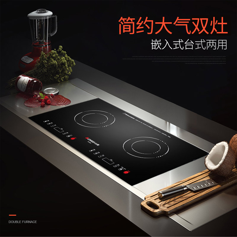 志高嵌入式电陶炉家用双头双灶镶嵌式电磁炉双眼光波炉特价正品 不挑锅可烧烤 三环猛火 嵌入式双灶