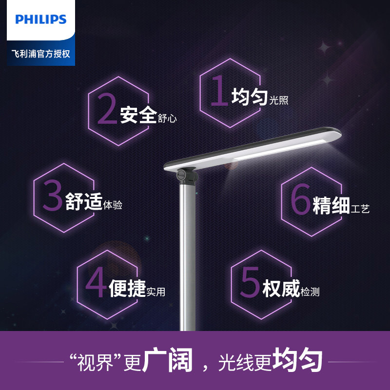 商品名称:飞利浦晶亮led灯护眼灯学习灯学生书桌卧室床头宿舍带充电口台灯 新品上市 五段调光 触摸开光