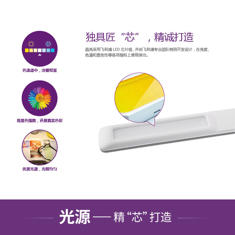 飞利浦晶亮led灯护眼灯学习灯学生书桌卧室床头宿舍带充电口台灯 新品上市 五段调光 触摸开光